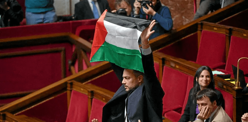 La réaction disproportionnée des députés de la majorité face à ce geste de solidarité et d’humanité est un baromètre éloquent de l’état de la liberté d’expression en France, principe essentiel de toute démocratie digne de ce nom. En conspuant et excluant ce député, tant pour son geste que pour le message qu’il portait, l’Assemblée nationale a confirmé que même après 8 mois du premier génocide de l’histoire diffusé en direct sur nos écrans, la restriction d’un droit fondamental que les Français subissent depuis le 7 octobre reste de mise, que ce soit avec les interdictions initiales, uniques au monde, des manifestations en soutien à la Palestine, les innombrables inculpations pour « apologie du terrorisme » à l’encontre des partisans de la cause palestinienne, du simple quidam à des parlementaires comme Mathilde Panot ou Rima Hassan, jusqu’à la répression féroce des manifestations d’étudiants dans leurs universités, qui mettent en péril leur liberté et leur avenir professionnel sans hésiter en réponse à l’appel irrépressible de leur humanité. La défense du droit du peuple palestinien à disposer de lui-même et à résister à l’occupation est devenue passible de poursuites judiciaires et de peines de prison, voire d’excommunication et même de licenciement, les pouvoirs publics n’étant pas les seuls à intenter de telles procédures abusives. Cette dérive déjà constatée depuis plusieurs années n’a fait que s’aggraver.