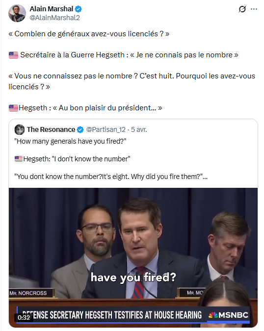 Donc, mon opinion est que, comme c’est tellement personnel, pour Trump, l’intérêt national est là, mais ce n’est pas sa priorité. Il ne refera pas la même erreur. C’était un désastre. C’est exactement ce qui s’est passé avec le Groenland. Une fois que le Groenland n’a pas donné les résultats qu’il espérait, il a été oublié. Combien de gens parlent du Groenland aujourd’hui ? Vous vous souvenez que ça a fait la une des journaux pendant des semaines ? C’était juste… il s’en va, tout simplement. Il s’en fiche. C’est fondamentalement un agent du chaos. Il trouvera un autre endroit pour semer le chaos parce que, bien sûr, en tant que mégalomane, il adore les gros titres, il adore être sous les feux de la rampe. Donc, à mon avis, comme ça ne s’est pas passé comme il le pensait, tout comme pour le Groenland, il va simplement s’en aller et oublier tout ça. Or, un homme d’État responsable ne ferait pas cela, car il considérerait cela comme une perte pour l’intérêt national américain. C’est certain. Un homme d’État responsable réfléchirait à plusieurs reprises à une décision comme celle-là. Je ne crois pas que Trump y réfléchisse à deux fois, car l’intérêt national n’est pas sa première préoccupation. Ça s’est transformé en désastre. Il savait qu’il devait y mettre un terme d’une manière ou d’une autre et maintenant, à la manière typique de Trump, je crois qu’il va simplement s’en aller.